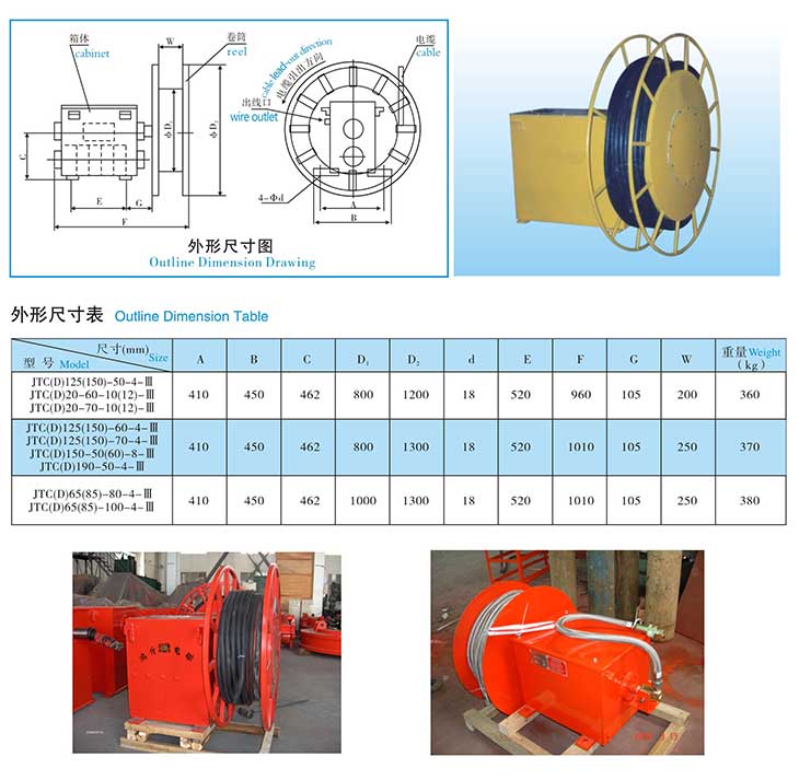 The cantilevered elastic cable reel produced by our company is of light and heavy structure. Cantilevered elastic cable reel (light) is characterized by the combination of spring base and reel. It has the advantages of compact structure, small volume, light weight and convenient installation. It is mostly used in electric grab, electric flat car, small and medium-sized lifting electromagnet and other electro-pneumatic equipment with short moving distance. Cantilevered elastic cable reel (heavy duty) is characterized by box structure and gear reduction, which effectively increases the bending moment and length. The body has large volume and weight, and is suitable for multi-core cable (such as 80 core), long distance (100m) and harsh environment (such as steel making). Most of the cable reels are multi row cable reels, supplemented by a small number of single row cable reels.